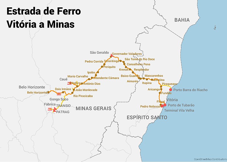 Figura 2 – Mapa da Estrada de Ferro Vitória-Minas.