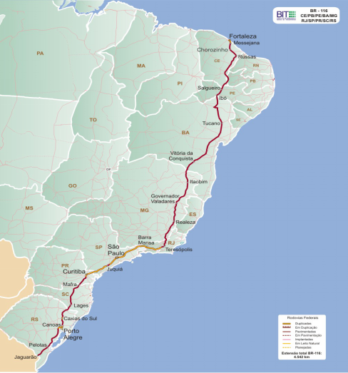 Figura 3 – Mapa da Rodovia BR-116: Norte-Sul do Brasil.