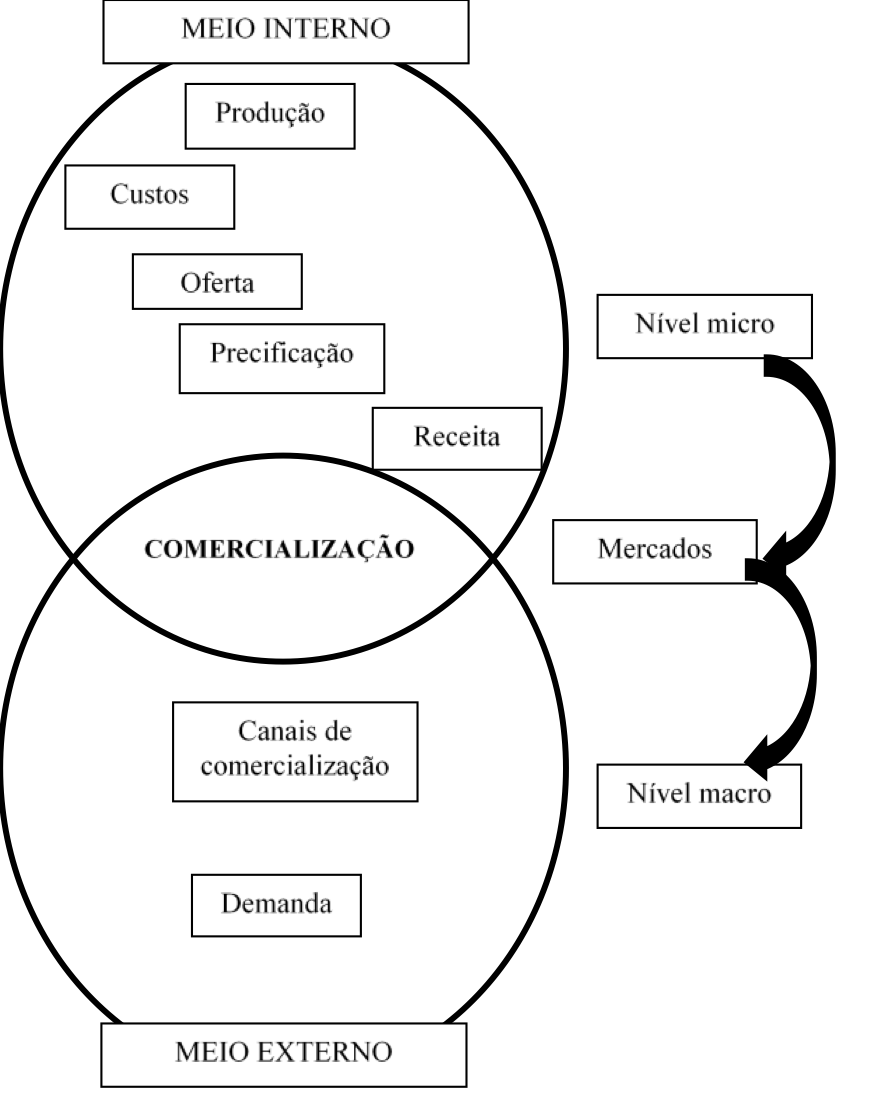 Para a análise dos resultados foram utilizados todos os níveis micros, que compreendem o produto em análise (custos para produzir, quantidade de melancias ofertadas, preços das melancias e receitas oriundas da comercialização desse produto), e macro (os fatores externos, como os canais de comercialização e a demanda, ou seja, a quantidade vendida em cada canal). A Figura 1 ilustra os níveis de análise realizada.