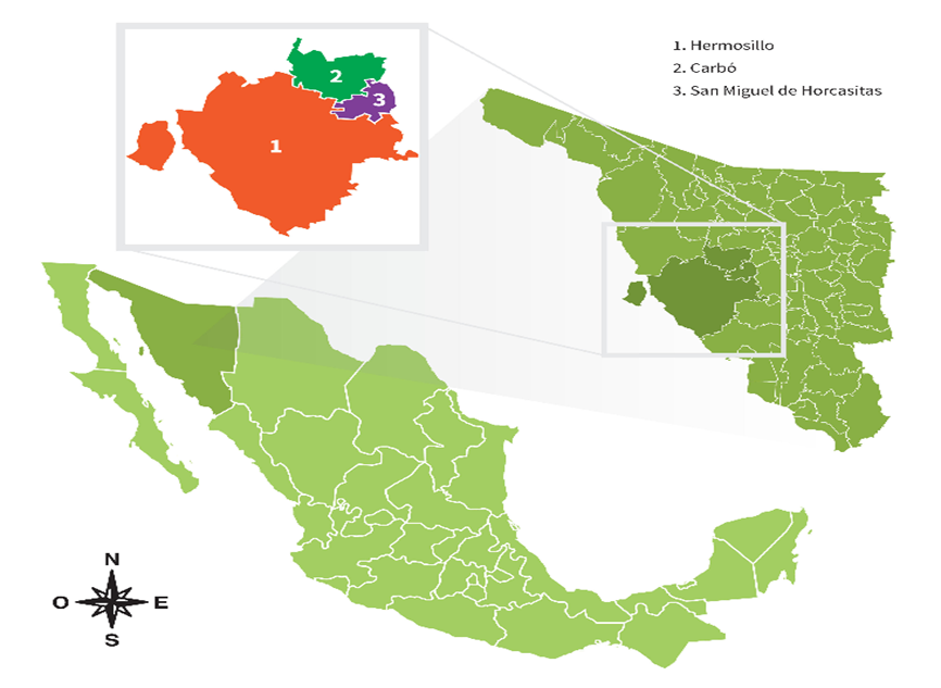 Las firmas estudiadas se localizan en zonas agrícolas de la región noroeste de México, en el estado de Sonora, específicamente en los municipios de Hermosillo (Costa de Hermosillo), Carbó y San Miguel de Horcasitas, que forman parte del Distrito de Desarrollo Rural 144 y el Distrito de Riego 051.